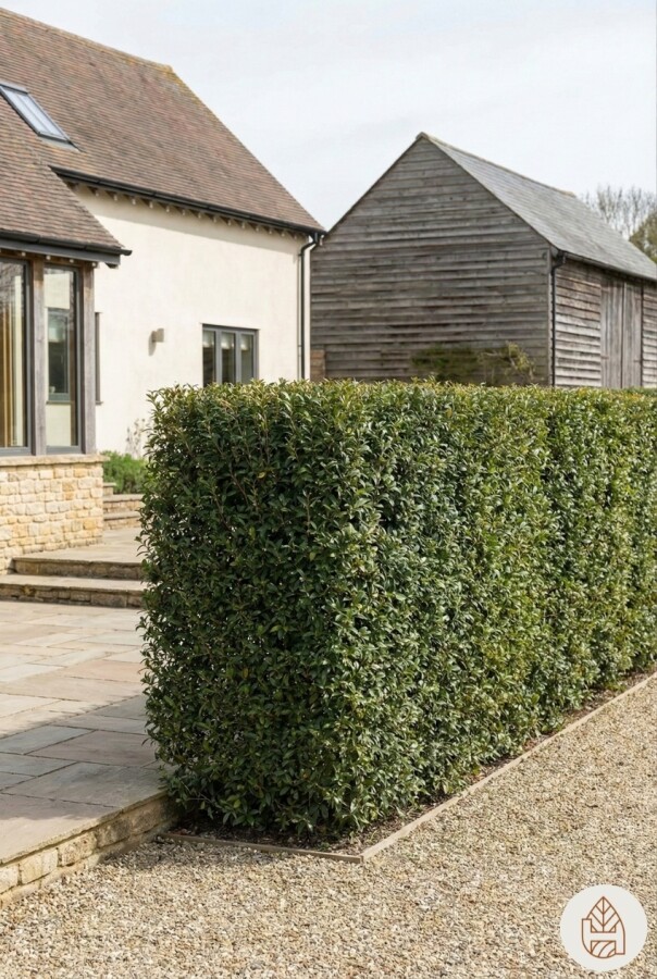 Osmanthus × burkwoodii hedge is a versatile plant known for its beauty and functionality in gardens. Part of the Osmanthus genus, this plant is commonly referred to as Burkwood osmanthus. It is an evergreen shrub that produces fragrant white flowers, making it a delightful addition to any garden. The plant is hardy, which means it can withstand various weather conditions, providing year-round greenery. Osmanthus × burkwoodii is perfect for creating low hedges or as a solitary plant, offering both privacy and aesthetic appeal. Its dense foliage makes it an excellent choice for hedging plants, ensuring a lush and attractive boundary. Choosing this hedge plant can enhance the garden's appearance while attracting birds with its lovely scent and structure.